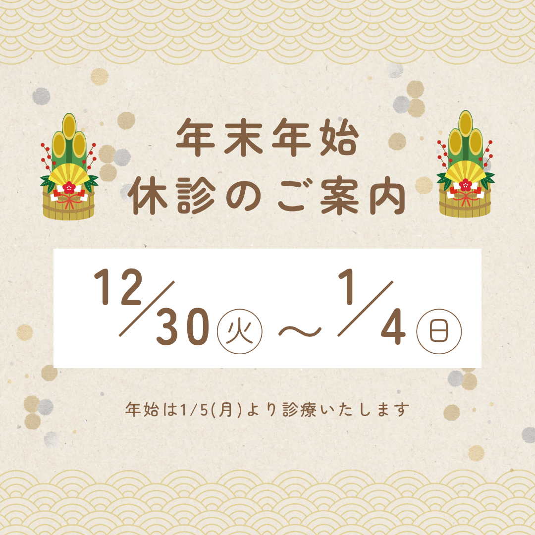 年末年始の休診のお知らせ 平素より当店をご利用頂き、誠にありがとうございます。 年末年始の営業日程についてご案内申し上げます。 年内最終営業日は12月29日(月)となります。 ご来店をご予定の患者さんは、お早めにご連絡下 […] -